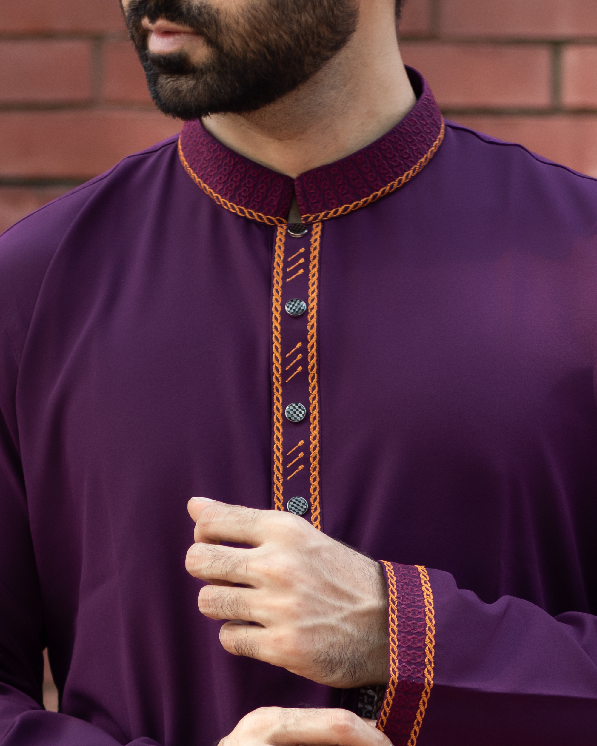 পার্পেল কালার মাইক্রোস্টিজ এমব্রয়ডারি লাক্সারি পাঞ্জাবি