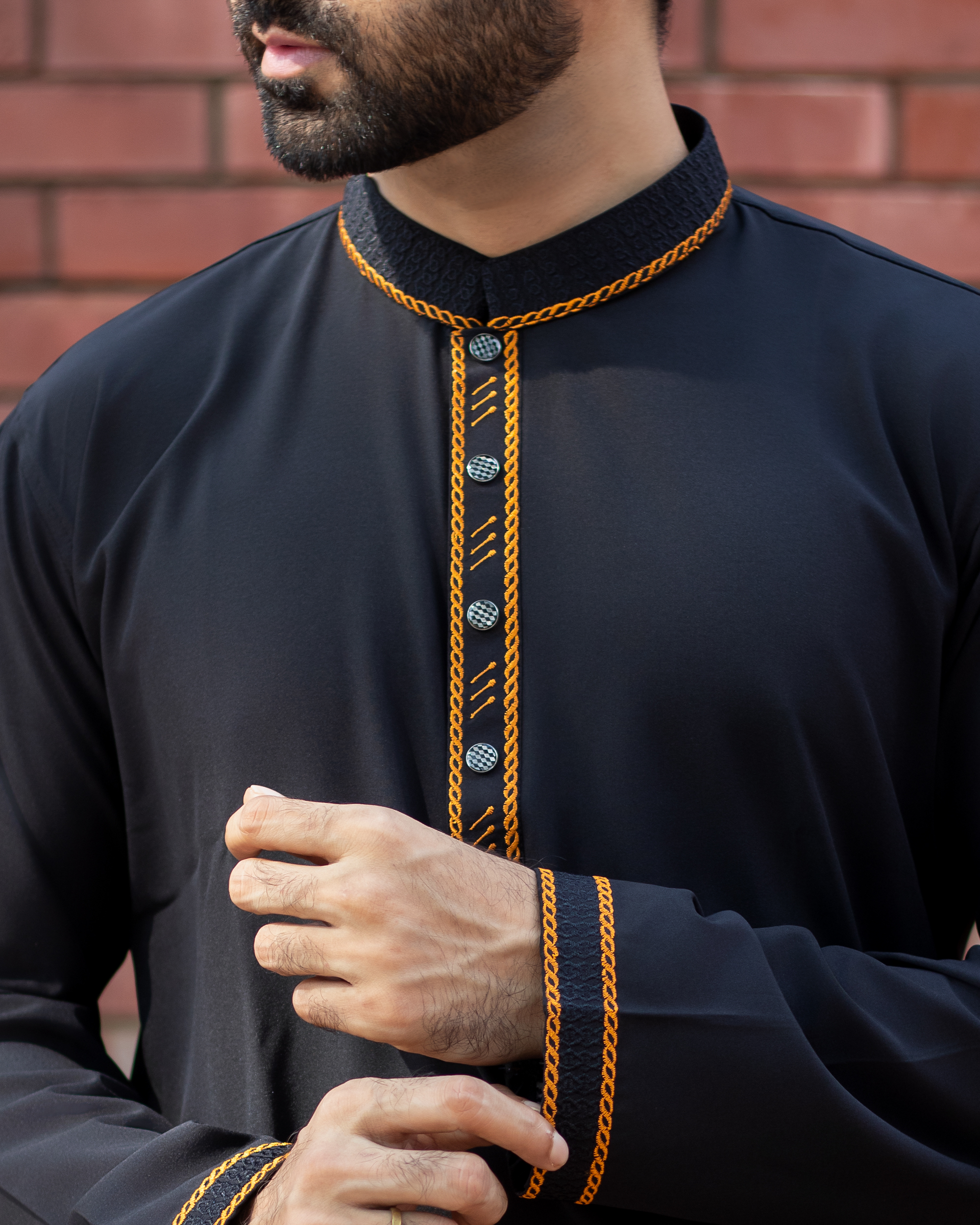ব্ল্যাক কালার মাইক্রোস্টিজ এমব্রয়ডারি লাক্সারি পাঞ্জাবি